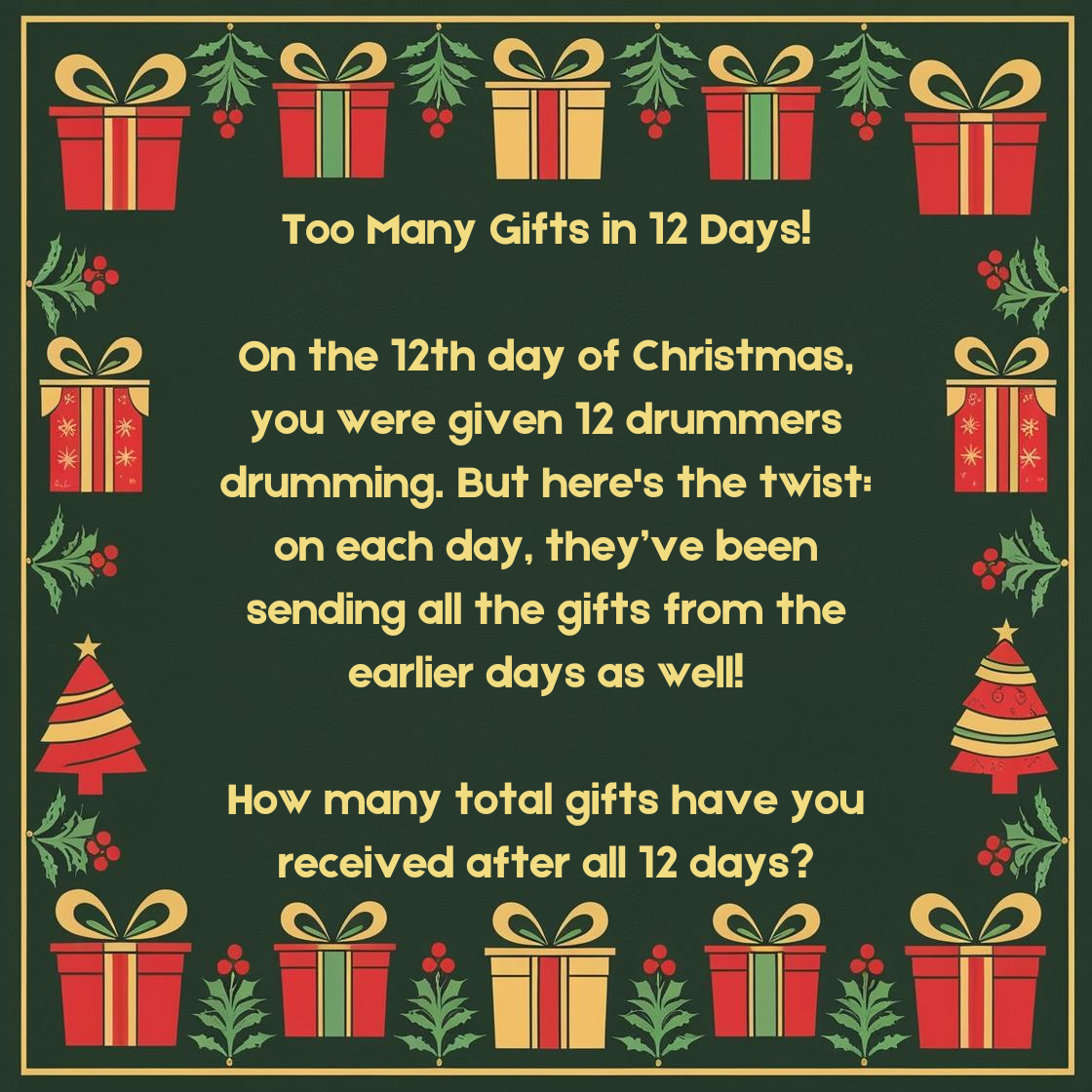 Day 4: Too Many Gifts! π