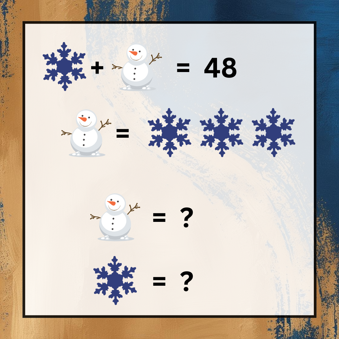 Snowman is worth 36, Snowflake is worth 12